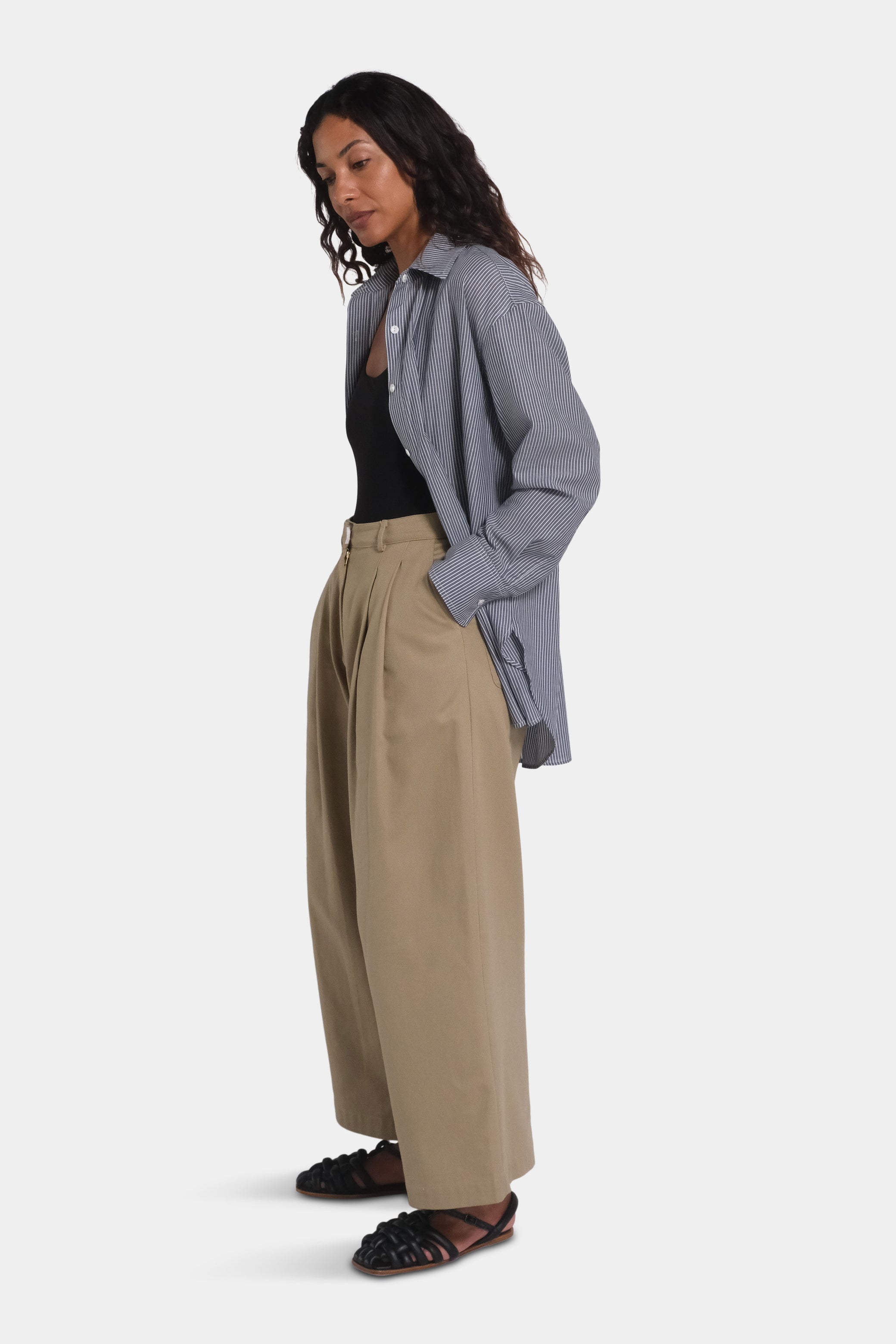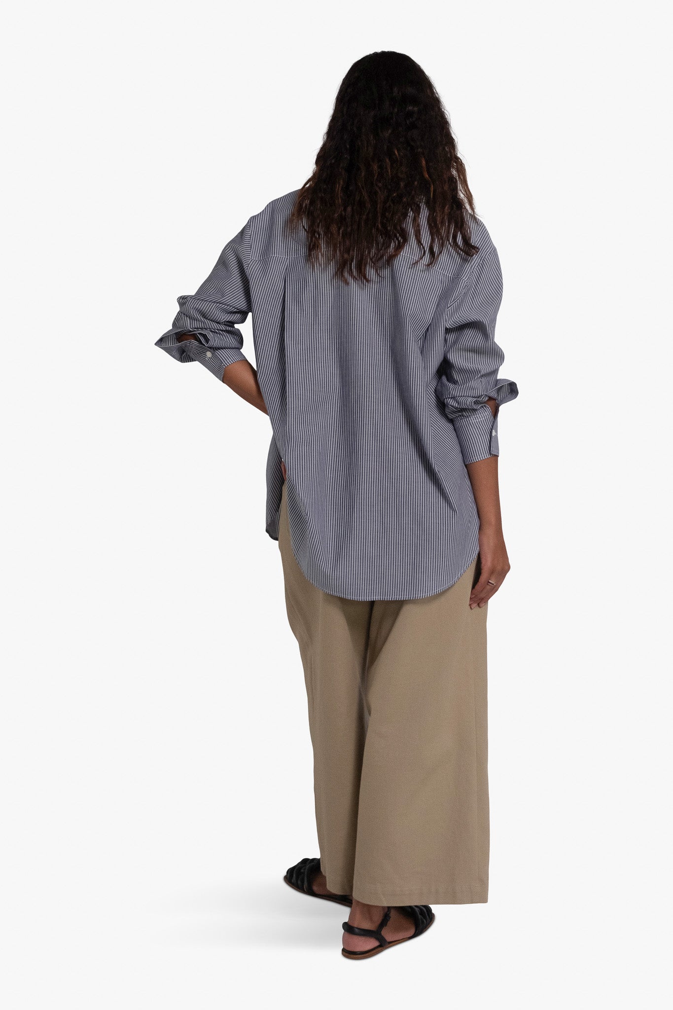 Designed for an effortless, relaxed silhouette, this shirt features a classic collar, a concealed front placket, and an extended back yoke with a double pleat. Gently oversized, it’s finished with a rounded hem and refined single-button cuffs—made for everyday wear.