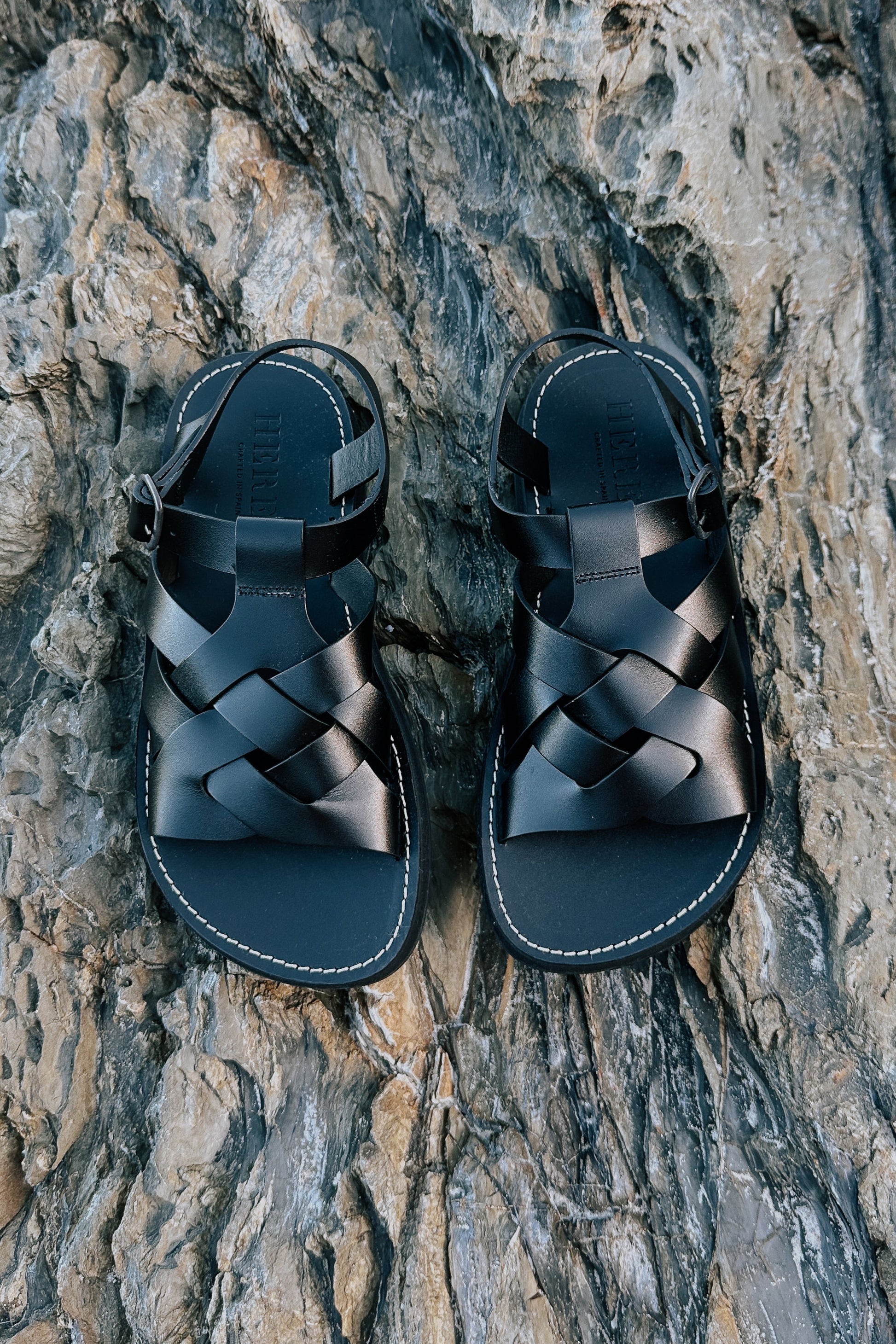 Open-toe fisherman sandal by Hereu is crafted in Italian veg-tanned leather and constructed on a wedged lightweight foam sole.