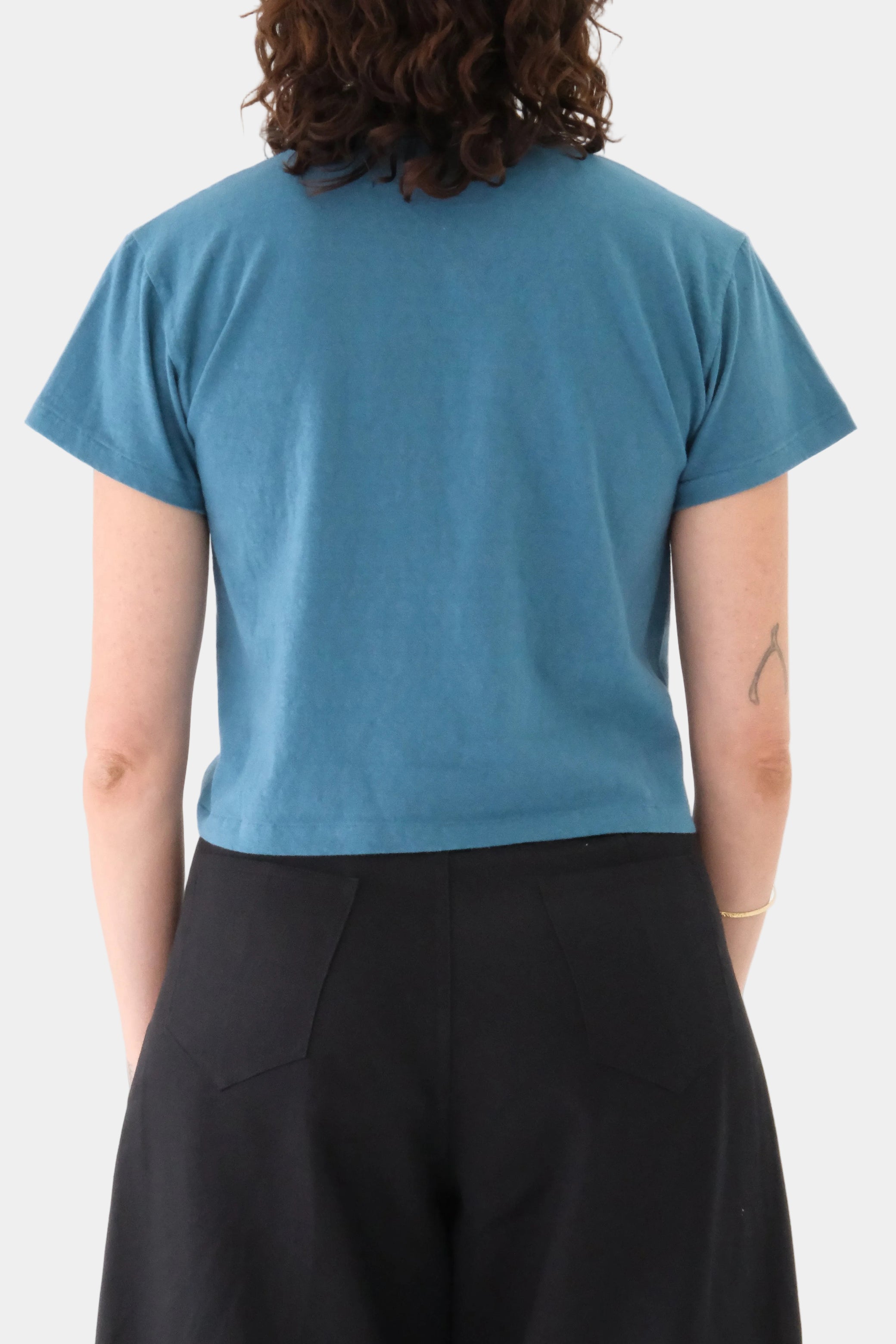 A short sleeve cropped t-shirt, crafted from 100% recycled Ochiwata cotton.