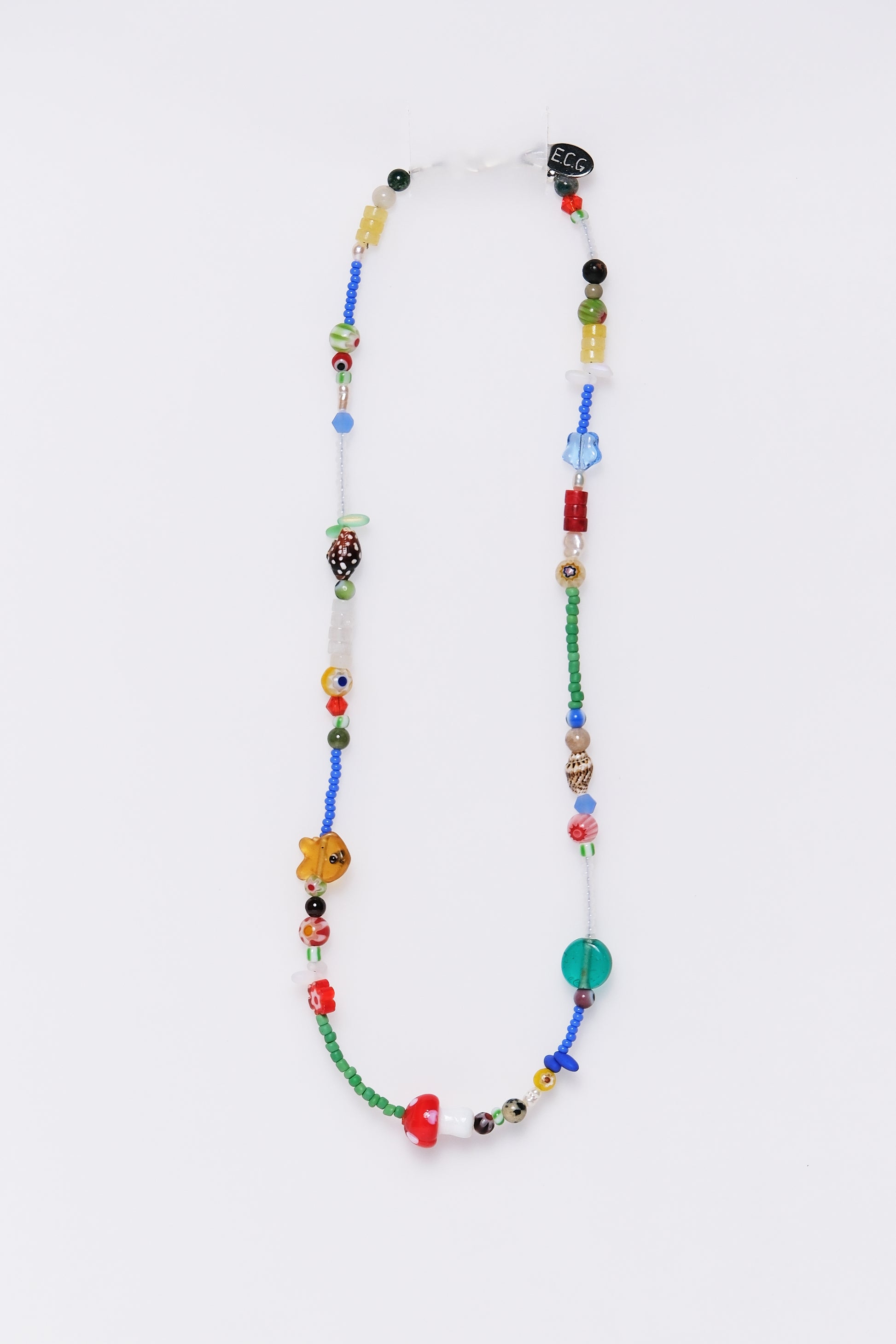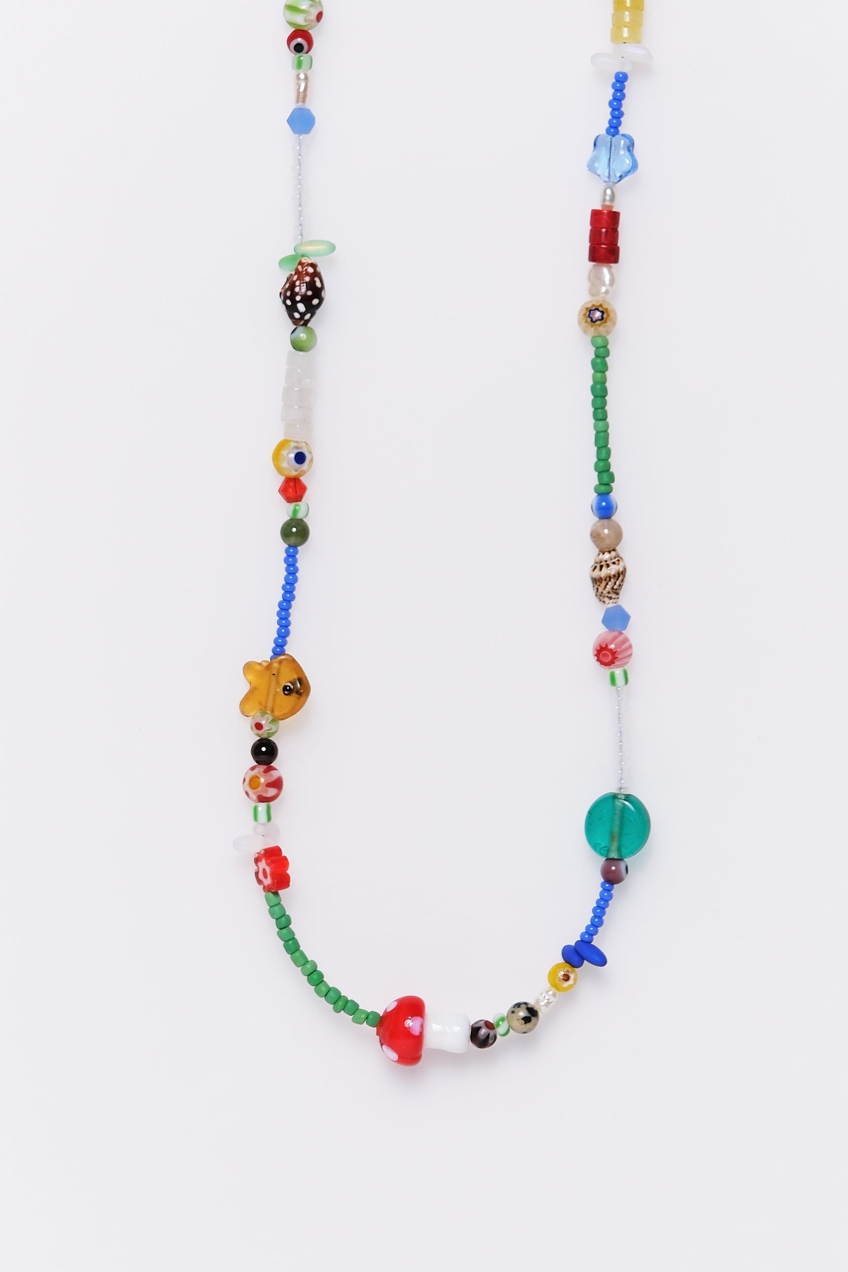 The No. 7 Necklace is a handcrafted piece featuring a considered mix of glasswork beads, pearls, Japanese glass, and natural shells. Each element is thoughtfully arranged and finished with sterling silver hardware for a timeless, elevated touch.