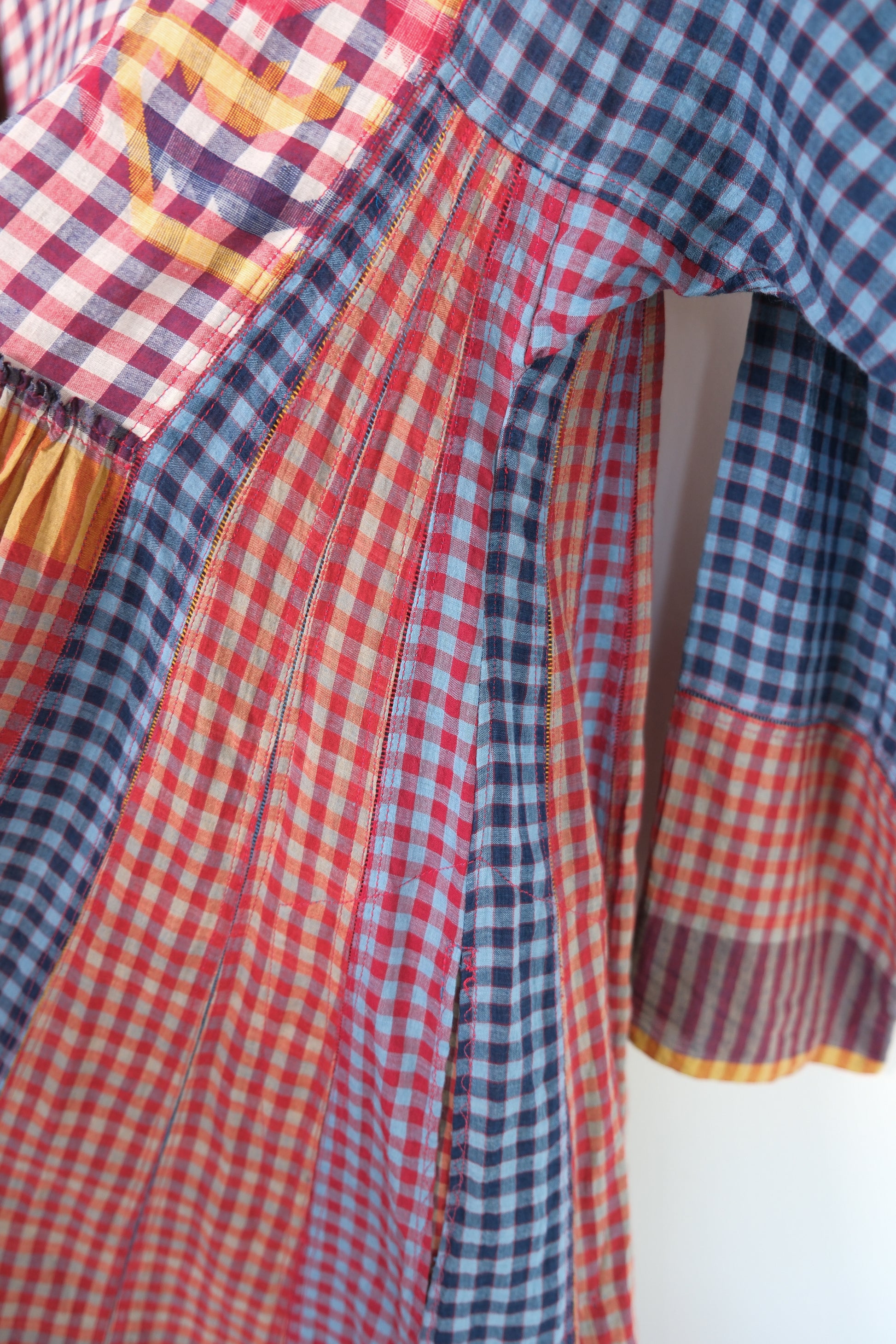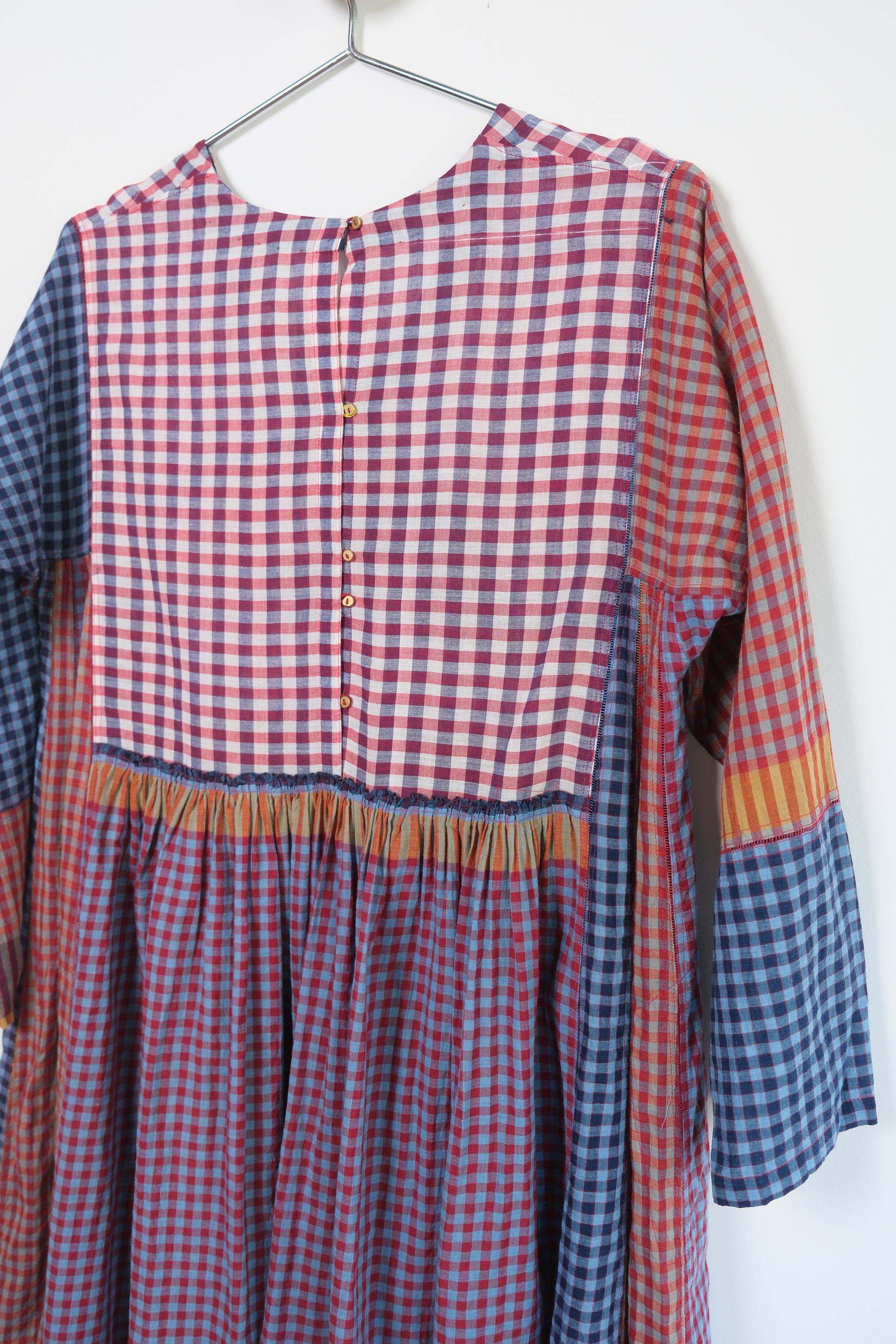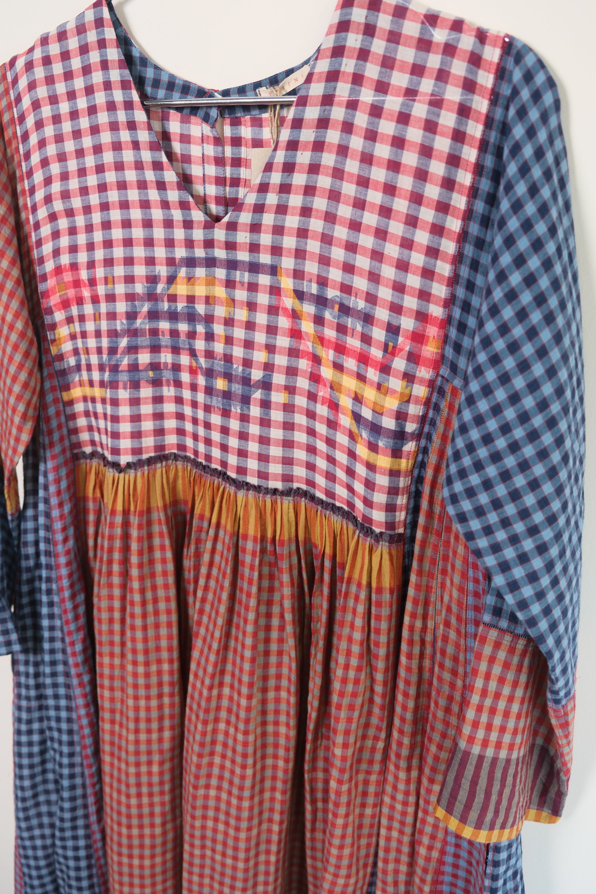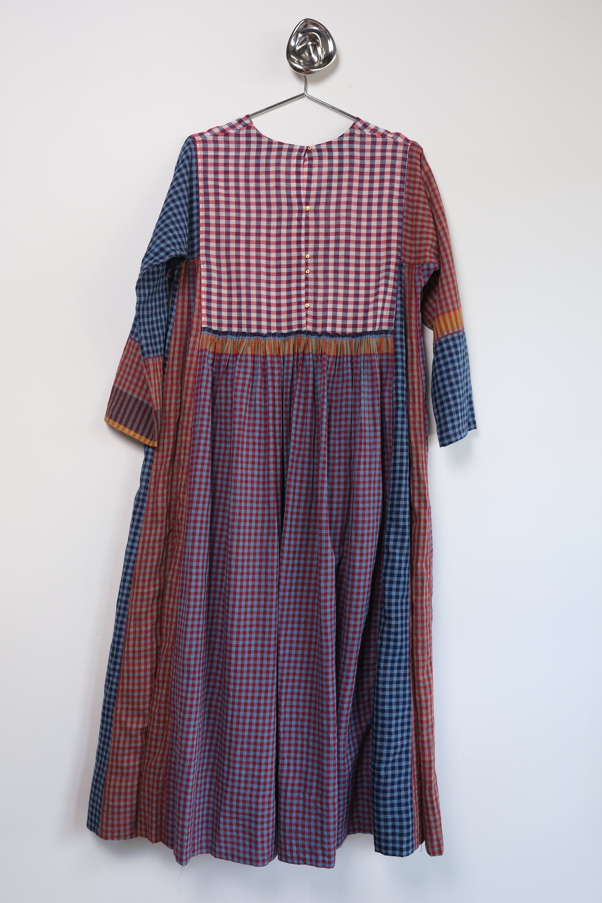 Crafted in 100% cotton this elegant everyday dress, features a shallow v-neck, long sleeve. Crafted in beautiful hand woven patch work style, the sides are constructed with traditional ladder stitch.