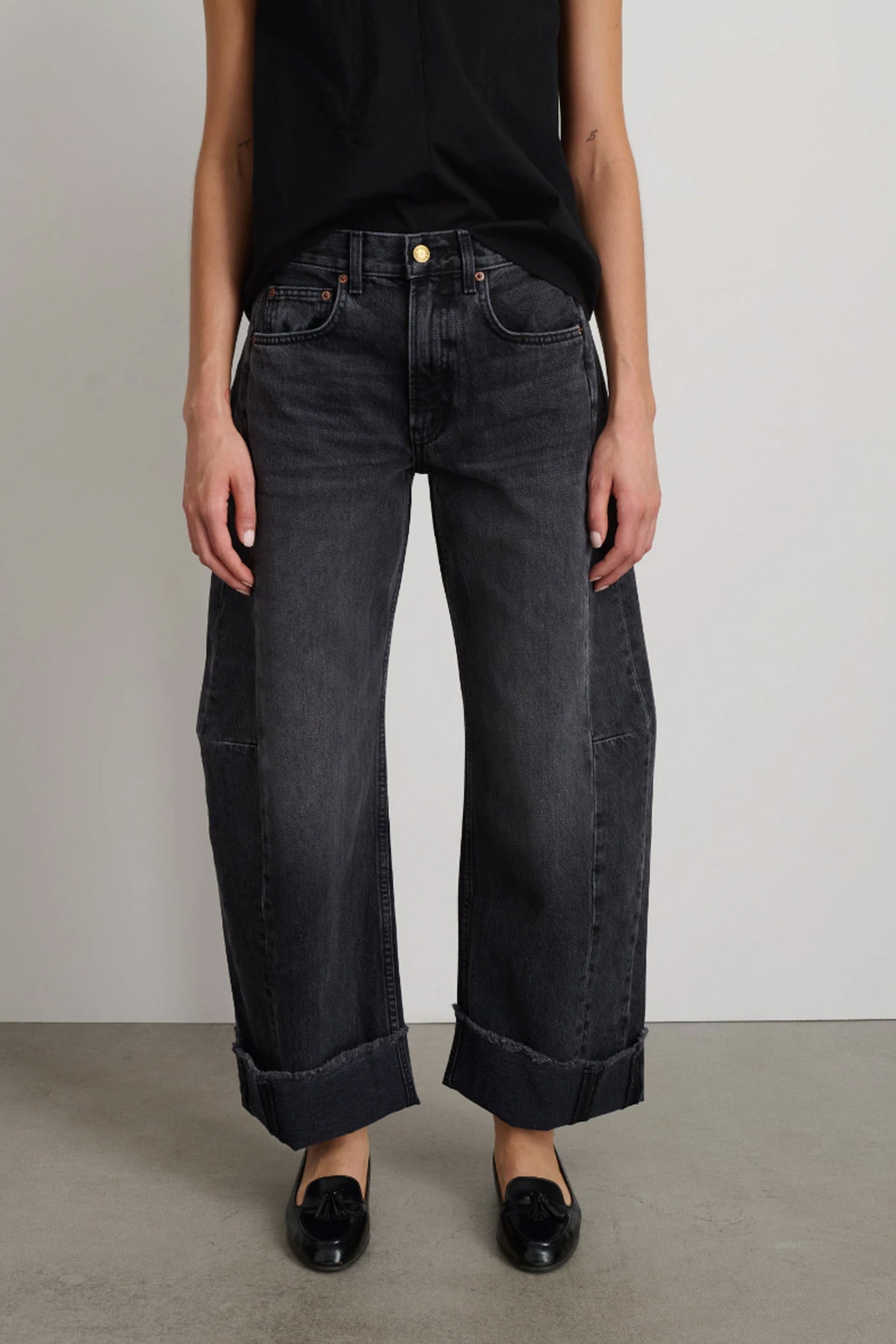 Relaxed Lasso cuffed jean is cut from heavy cotton rich denim then finished for a relaxed structured look. Designed to sit at the natural waist with a pieced outer seam, kinked leg shape, long length and flat-felled finishing. The raw hemline may be worn long or cuffed.