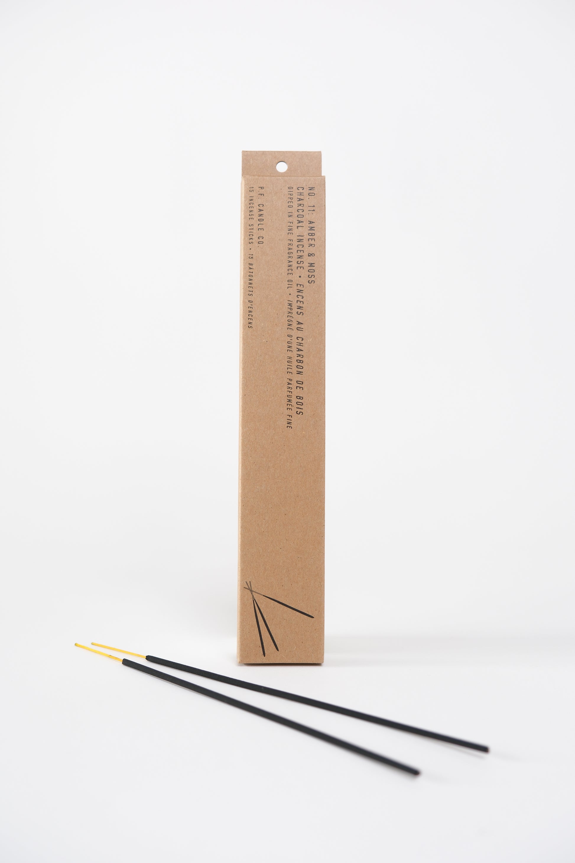 Amber and Moss incense, a scent to remind you of a weekend in the mountains, sun gleaming through the canopy. Sage, moss, and lavender.